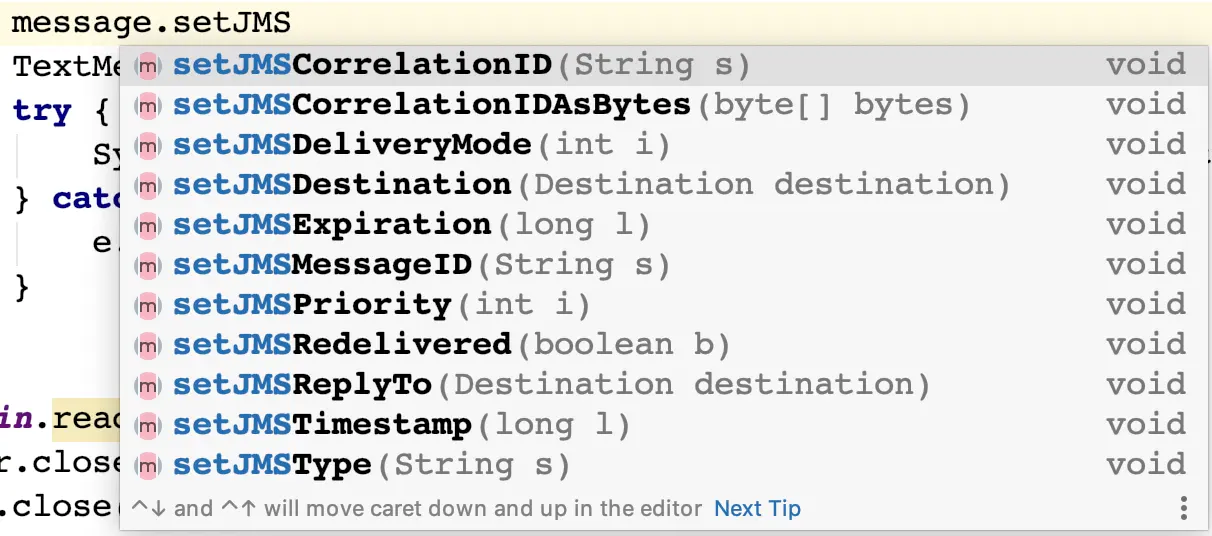 TextMessage msg = session.createTextMessage("msg---" + i);