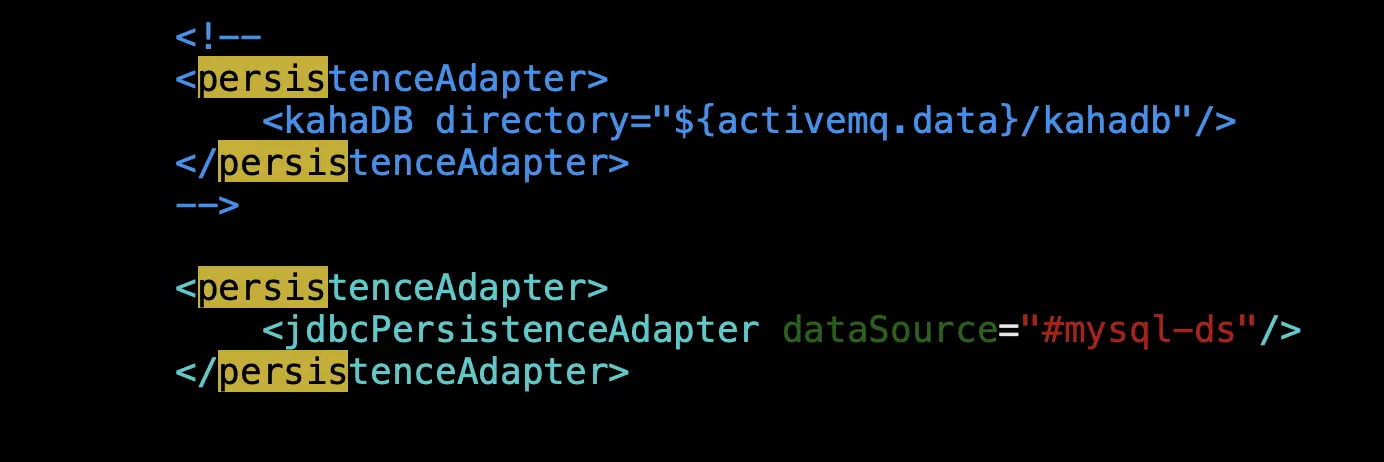 - 修改三台节点的持久化配置,在activemq.xml文件中