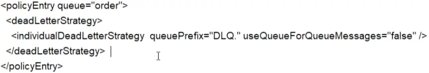 IndividualDeadLetterStrategy:把DeadLetter放入各自的死信通道中。 对于Queue而言,死信通道的前缀默认为"ActiveMQ.DLQ.Queue."。 对于Topic而言,死信通道的前缀默认为"AxtiveMQ.DLQ.Topic."