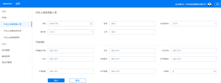 各片区检验员根据当班叶轮上线检查的质量情况输入到该表单当中,计划、生产和品质人员通过图表直观的反应质量波动状况,及时掌握质量信息,当出现异常时能快速响应。