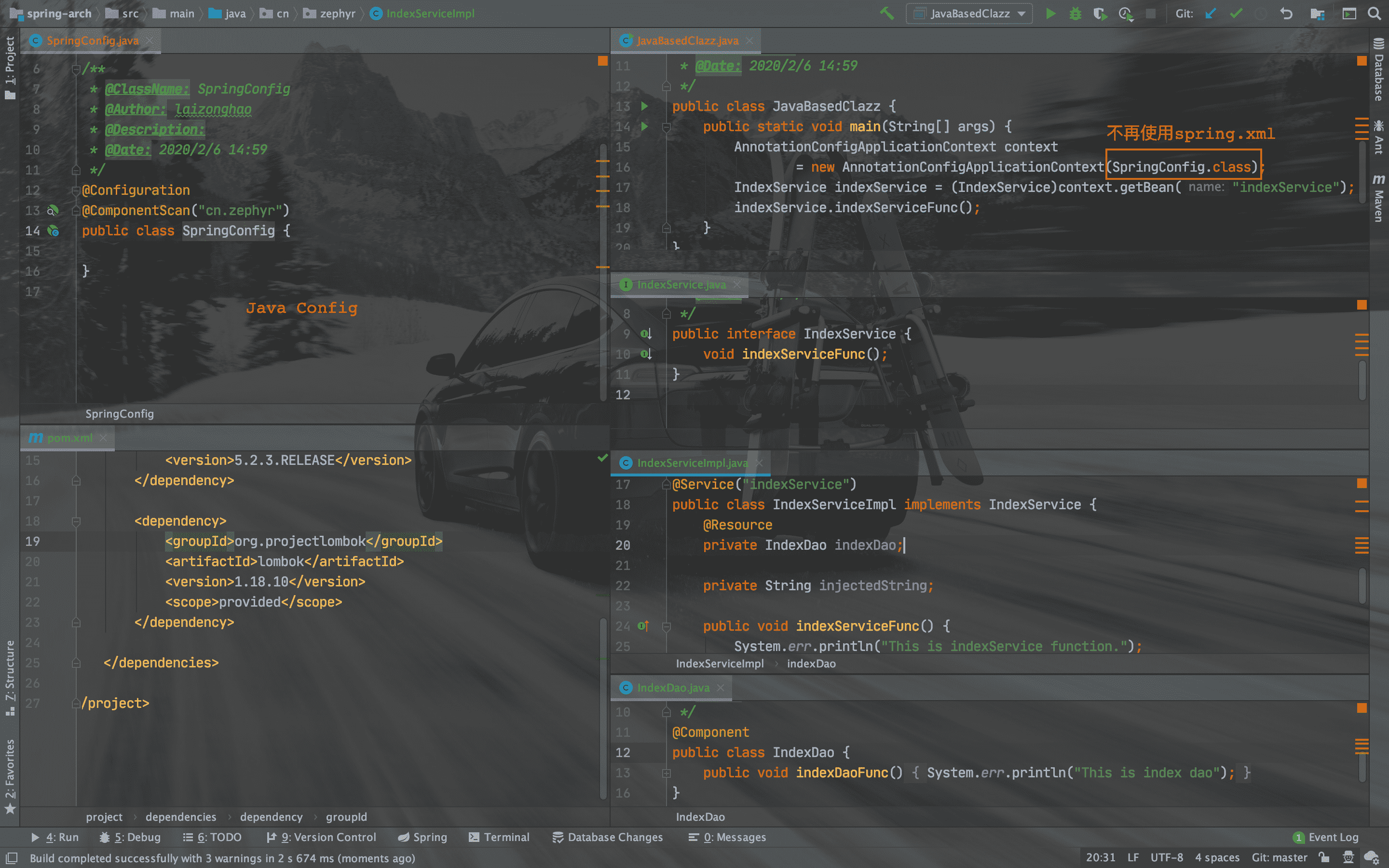 基于java config的方式,个人觉得让我们从繁琐的xml配置解放出来,使用java config可以提高代码可读性,减少出错: