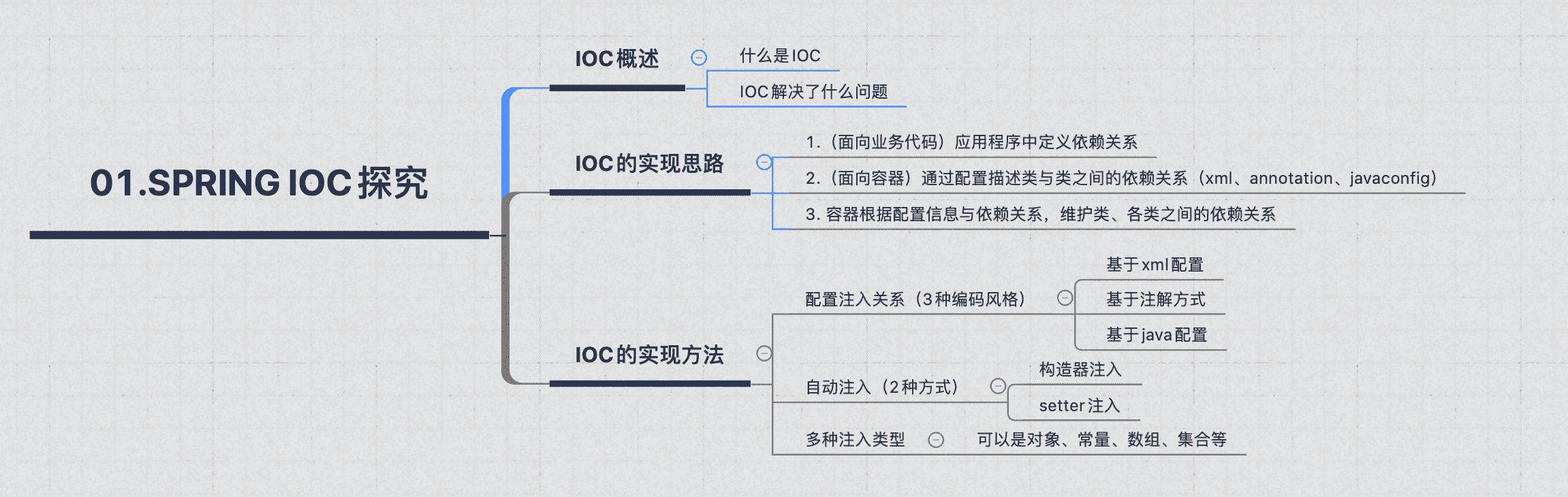 虽然下面即将说到3种配置方式,但原理上,SpringIOC只有2中注入方法:基于setter注入、基于构造器注入。而所谓的3种配置方式(编程风格)只是不同的配置手段罢了。