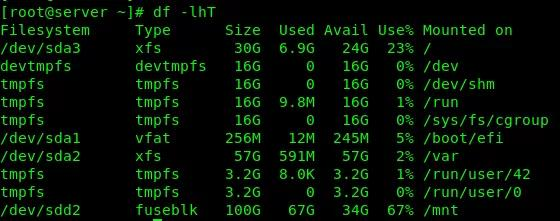 执行df -lhT,可以查看到最新挂载的分区。
