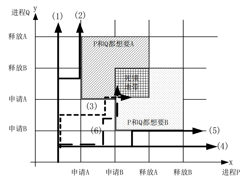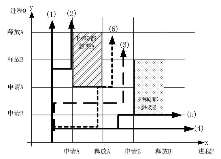 再看看下面这个图,同样说明了进程推进顺序不恰当导致的结果: