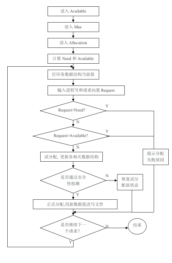 下面是银行家算法整个实现过程的流程图: