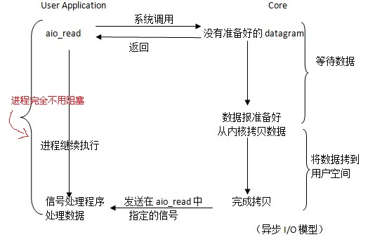 其实我理解起来,思路是和信号IO差不多的,唯一不同的地方,对于IO数据的操作,异步IO是由内核主动发起的,而信号IO是由用户进程发起的。