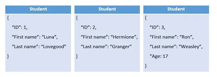 虽然在关系型数据库中,所有内容都是按行和列进行结构化好的,但在 NoSQL 数据库中,并没有针对所有记录通用的结构化的 schema。大多数 NoSQL 数据库存储的是 JSON 记录,不同的记录可以包含不同的字段。