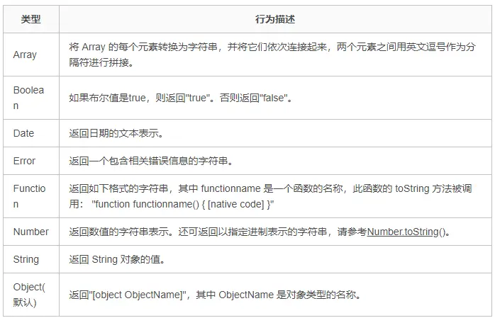 解决这个问题首先要知道:toString方法用于将当前对象以字符串的形式返回,toString()函数的返回值为String类型,返回当前对象的字符串形式,并且JavaScript的许多内置对象都重写了该函数,以实现更适合自身的功能需要.