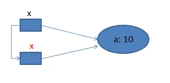 2. 引用传递,传入 x 是地址,将其赋值给同名的 x 传的是地址,改的是同一个空间中的对象