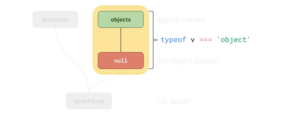 typeof null返回'object',而不是'null',尽管Null它本身是一种。要了解原因,请考虑将所有JavaScript类型的集合分为两组: