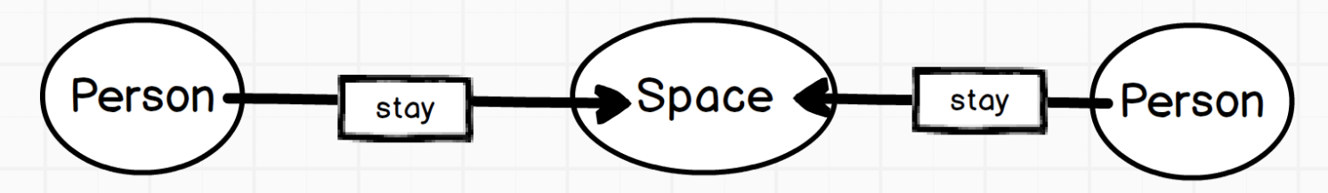 在建模之前我们需要清楚人和人之间的关系载体是什么?根据现有的病例信息,我们知道 A 和 B 会的接触场景最常见的是:**同一个时间段逗留在某个相同的空间。**这也是本次疫情筛选需隔离人群的重要指标:是否和确诊 / 疑似病例在酒店、火车、超市有过密切接触。