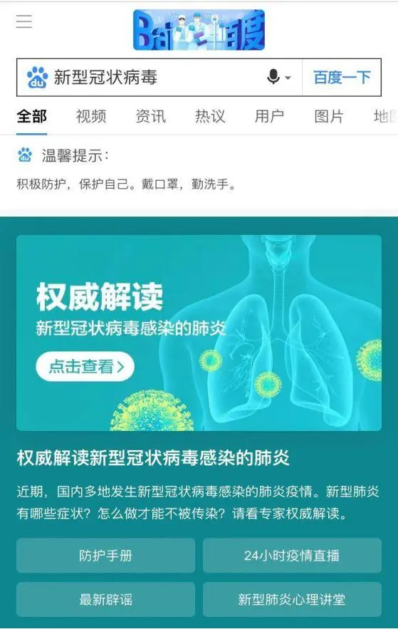 在几天前,百度宣布成立总规模3亿元疫情及公共卫生安全攻坚专项基金,用于支持新型冠状病毒等新疾病的治愈药物筛选、研发等一系列抗击疫情工作。