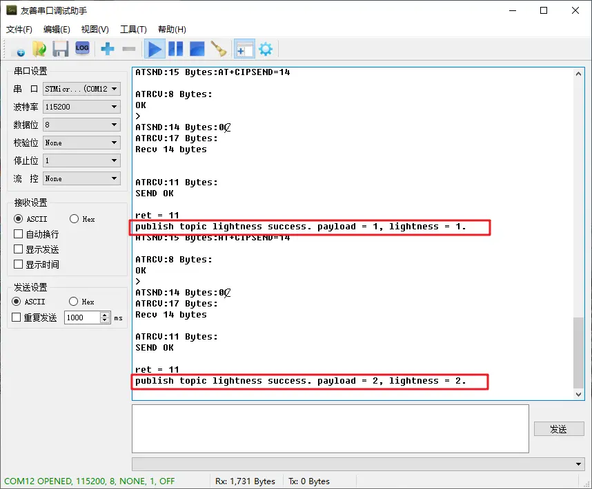 printf("publish topic %s success. payload = %s, lightness = %d.\r\n", pubpara_lightness.topic.data, pubpara_lightness.msg.data, lightness_value);