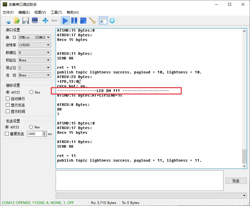 可以看到设备后作出回应:
