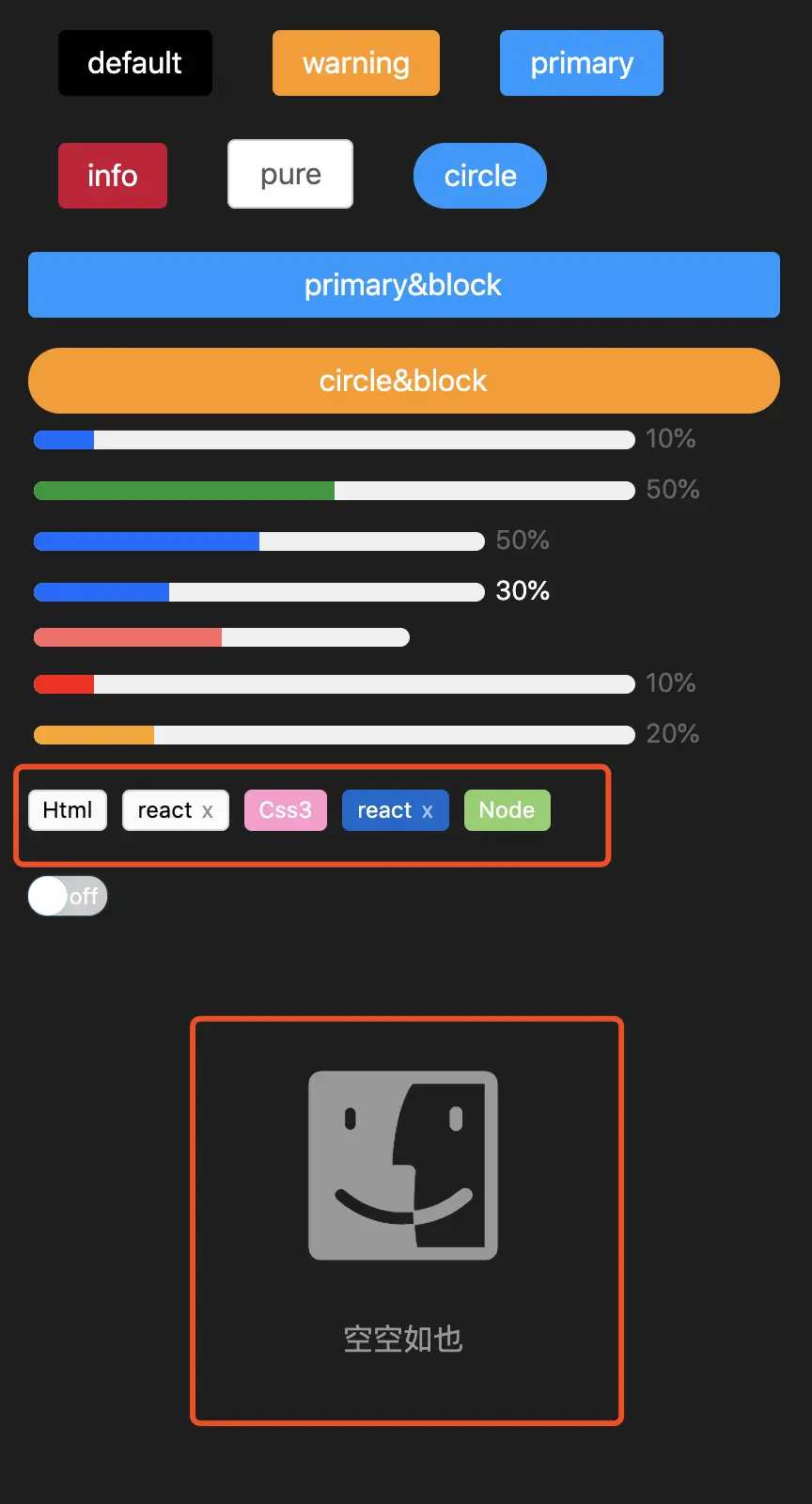 是不是很简单? 这样一个可定制对的tag组件就完成了,关于代码中的css module和classnames的使用大家可以自己去官网学习,非常简单.