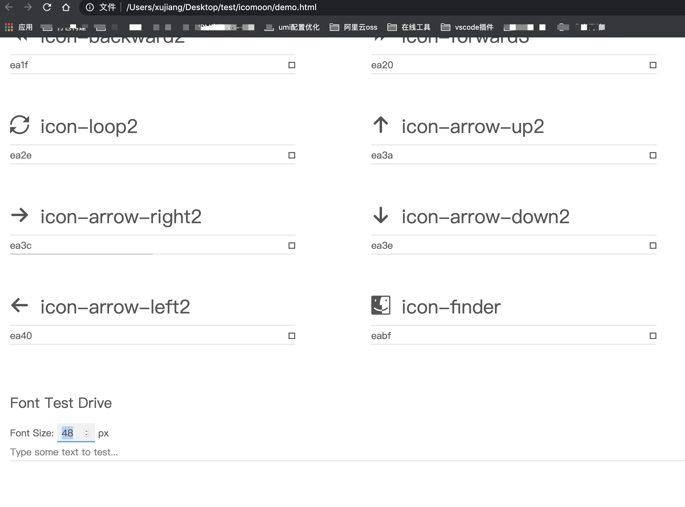 我们将下载icomoon图标文件后,会有一个html的demo文件,里面有具体的使用方法和离线编辑功能,如下: