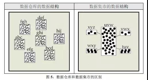 数据仓库是企业级的,可以为整个企业各个部门的运行提供决策支持手段,而数据集市则是一种微型的数据仓库,它通常有更少的数据,更少的主题区域,更少的历史数据,是部门级别的,只能为某个局部范围的管理人员服务。