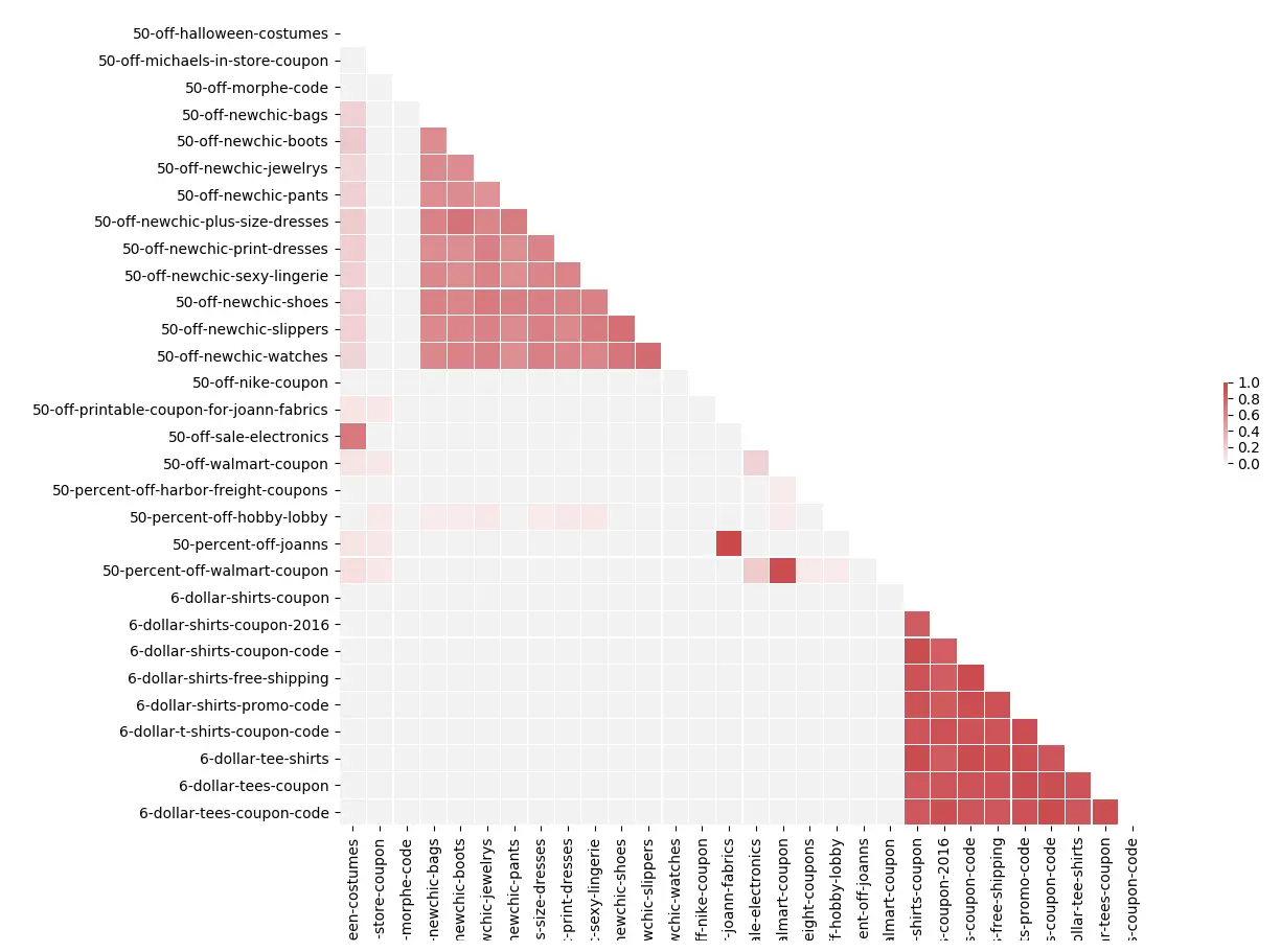 从上图可以看出全站相似度并不高,大部分页面相似分布在10%-20%之间,处于可接受范围。如果相似页面多,则热力图可能会出现如下情况: