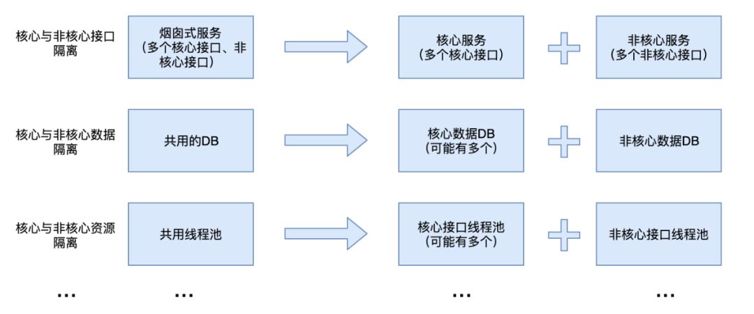 3)核心接口与非核心接口隔离:可以通过使用不同应用、不同 group、不同线程池、不同的 client 等,根据业务需要使用隔离手段。