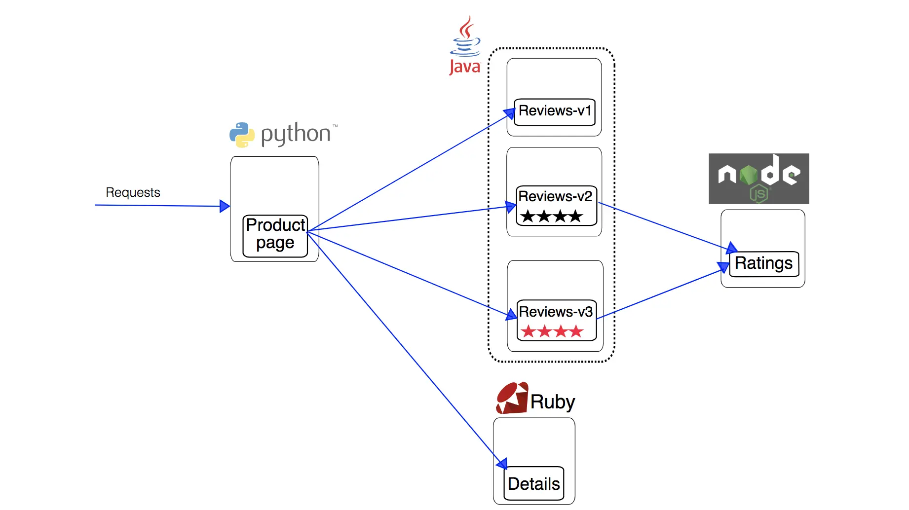 - reviews :这个微服务包含了书籍相关的评论,它还会调用 ratings 微服务。