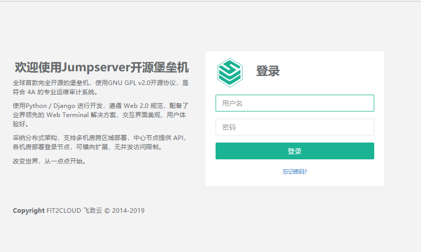 Jumpserver 是全球首款完全开源的堡垒机,使用 GNU GPL v2.0 开源协议,是符合 4A 机制的运维安全审计系统。 Jumpserver 使用 Python / Django 进行开发,遵循 Web 2.0 规范,配备了业界领先的 Web Terminal 方案,交互界面美观、用户体验好。 Jumpserver 采纳分布式架构,支持多机房跨区域部署,支持横向扩展,无资产数量及并发限制。 改变世界,从一点点开始。 注: KubeOperator 是 Jumpserver 团队在 Kubernetes 领域的的又一全新力作,欢迎关注和使用。