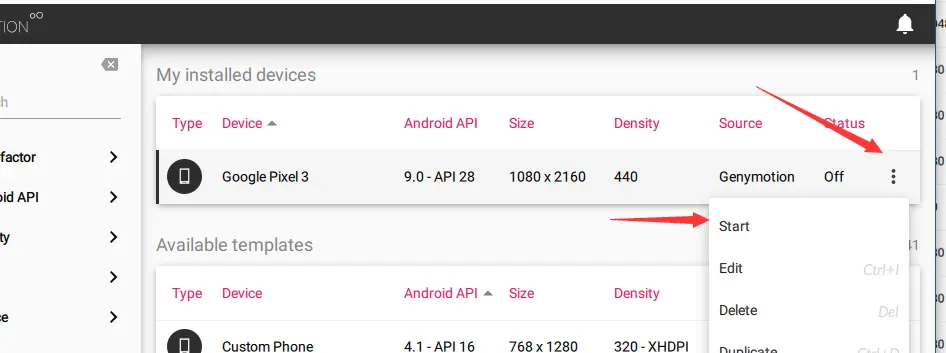 (此时已经打开Genymotion)