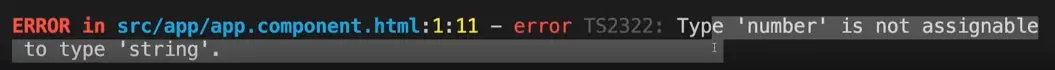 现在通过设置 "strictTemplates": true 就可以对 template 传参类型检查,此时 terminal 就会返回类型错误。