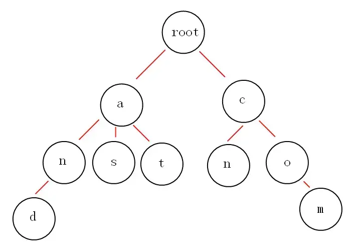 下面我们有and,as,at,cn,com这些关键词,那么如何构建trie树呢?