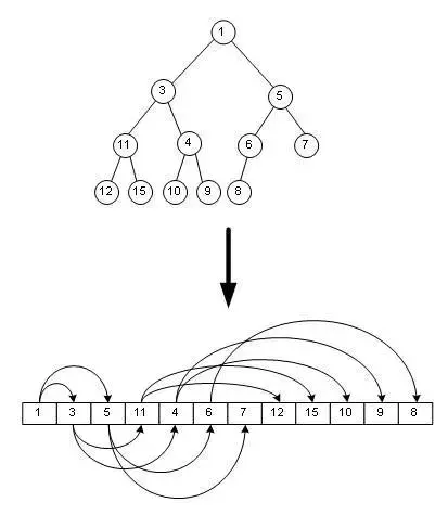 堆是一种特殊的二叉树,具备以下两种性质 1)每个节点的值都大于(或者都小于,称为最小堆)其子节点的值 2)树是完全平衡的,并且最后一层的树叶都在最左边这样就定义了一个最大堆。 如下图用一个数组来表示堆: