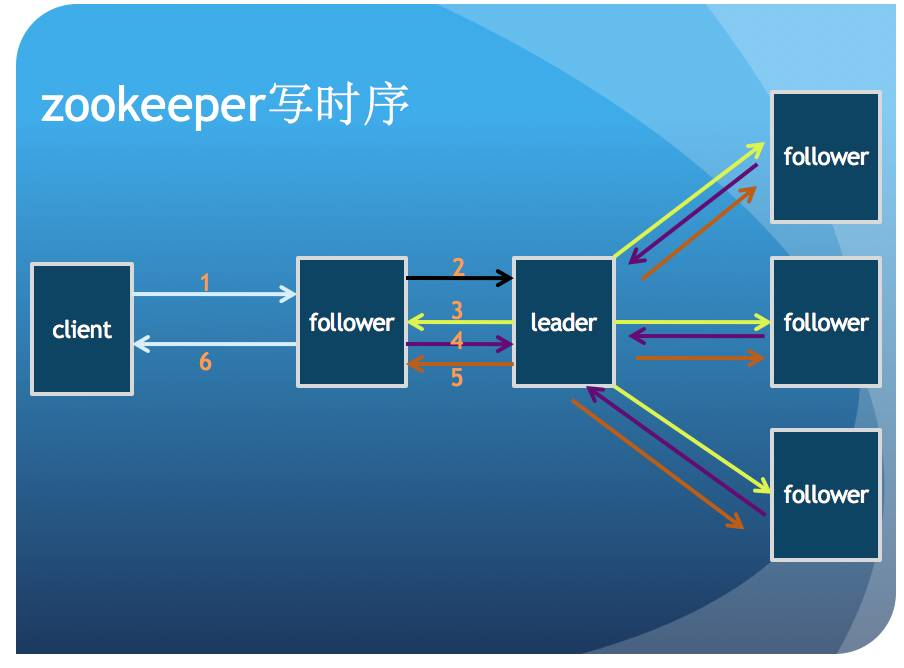 原子广播(所有写请求转发给leader,再由leader广播给各个follower,当半数以上follower将修改持久化后,leader才会提交这个更新,接下来客户端才会收到一个更新成功的响应)