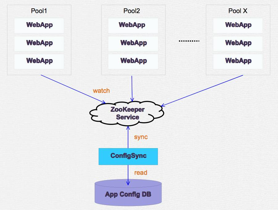 将配置文件信息保存在 Server 某个目录节点中,然后所有需要修改的应用及其监控配置信息的状态