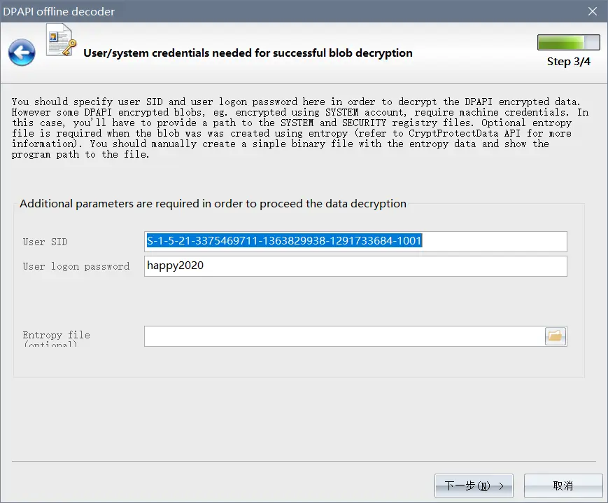 在尝试了mimikatz长达三个半小时后(为了300分不容易),看到了这篇文章,提到了一个解密blob的工具Passcape Windows Password Recovery,抱着试试的心态试了一下,密码也是随便填的之前的NTLM解出的值