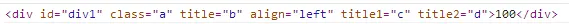 <div id="div1" class="divClass" title="divTitle" title1="divTitle1">100</div>