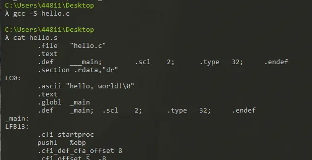 gcc的-S参数生成汇编代码, 汇编代码是最接近机器码的, 对于神犇们来说, 也是能够看得懂的. 类似于下图所示