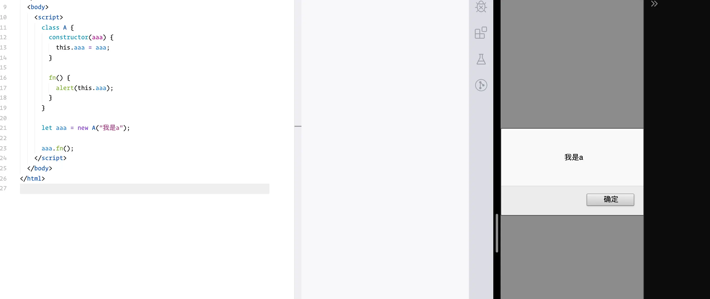 咱们es6写class就简单多了,直接提供了一个关键字class,直接写就行了,不过本质上来说只是语法糖而已,所以建议大家还是看看es6之前的写法