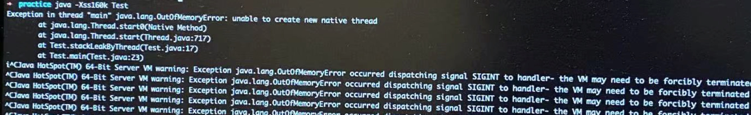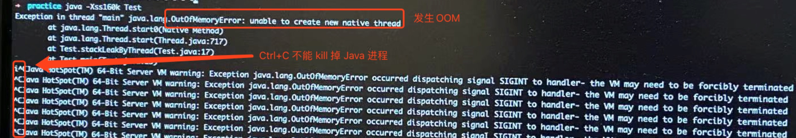 实验是这样的:想测试在指定的栈大小(160k)下通过不断创建多线程观察其造成的 OOM 类型