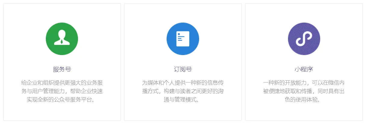 公众号分为 服务号 和 订阅号 两种,以下是官方对于两种形式的介绍说明: