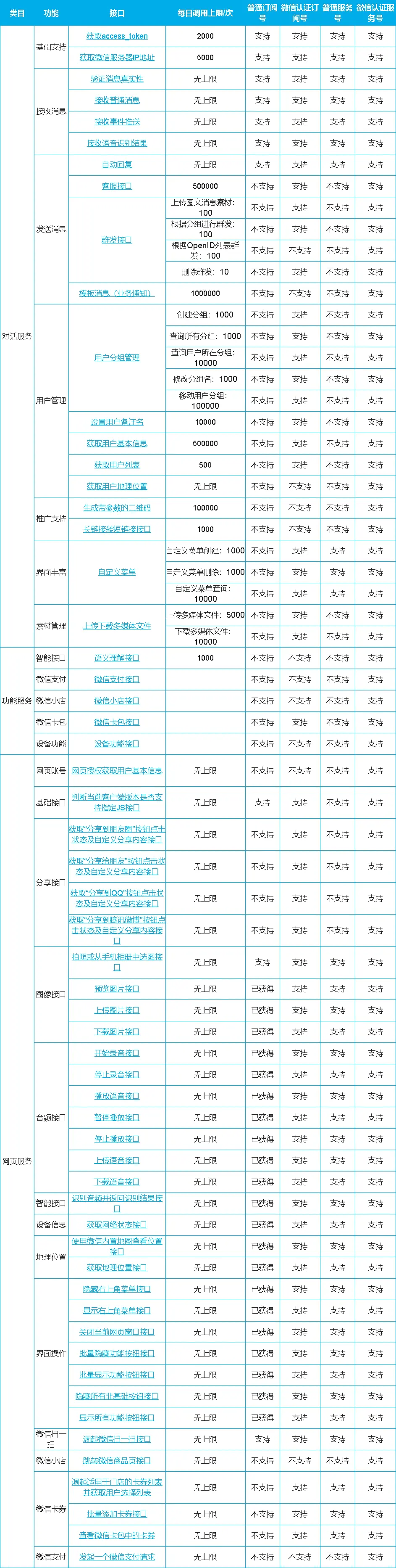 服务号:为企业和组织提供更强大的业务服务与用户管理能力,主要偏向服务类交互(功能类似12315,114,银行,提供绑定信息,服务交互的);