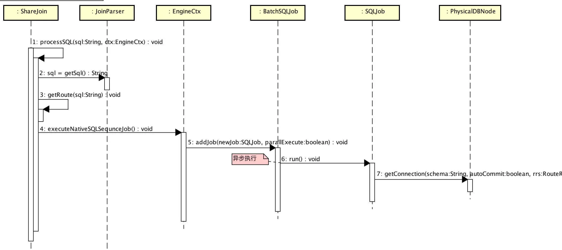 在 ShareJoin 里,SQLJobHandler 有两个实现:ShareDBJoinHandler、ShareRowOutPutDataHandler。前者,左边的表执行的 SQL 回调;后者,右边的表执行的 SQL 回调。