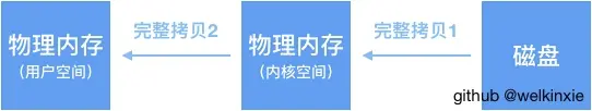 - 将 完整 的文件从磁盘拷贝到物理内存(内核空间)。