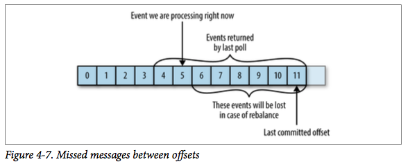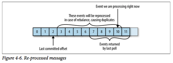 假如一个消费者在重平衡前后都负责某个分区,如果提交位移比之前实际处理的消息位移要小,那么会导致消息重复消费,如下所示: