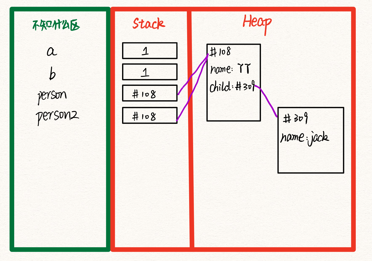 当person2的对象被修改,person的对象也同时做出了相应修改。原理如下:person和person2存放到的是同一块内存。