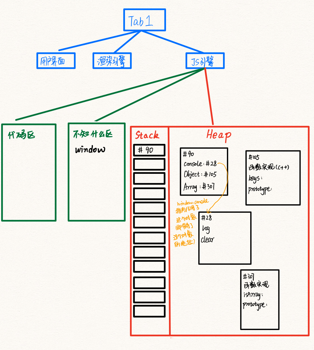 - window对象里有很多个属性,其中有个属性console指向一个对象;有个属性Object指向一个对象,这个对象是个函数,里面有很多属性;还有个属性Array指向一个对象,这个对象也是个函数,里面有很多属性