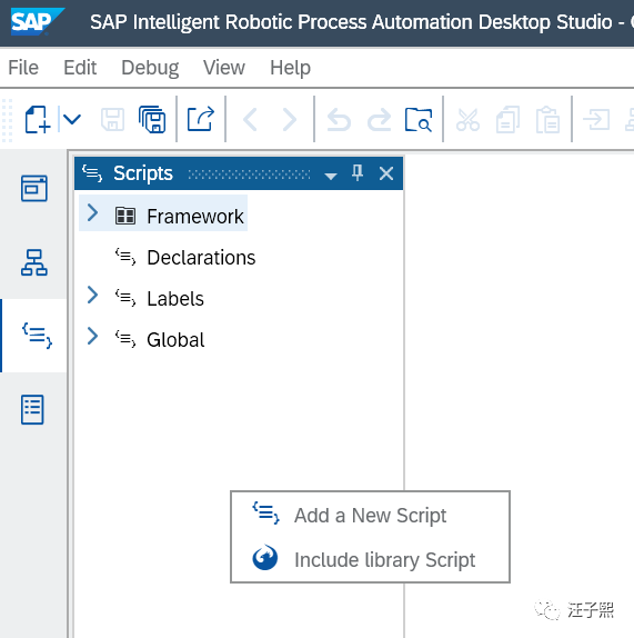打开SAP Intelligent Robotic Process Automation Desktop Studio,导入SAP预置的操作Excel的nodejs脚本库文件。