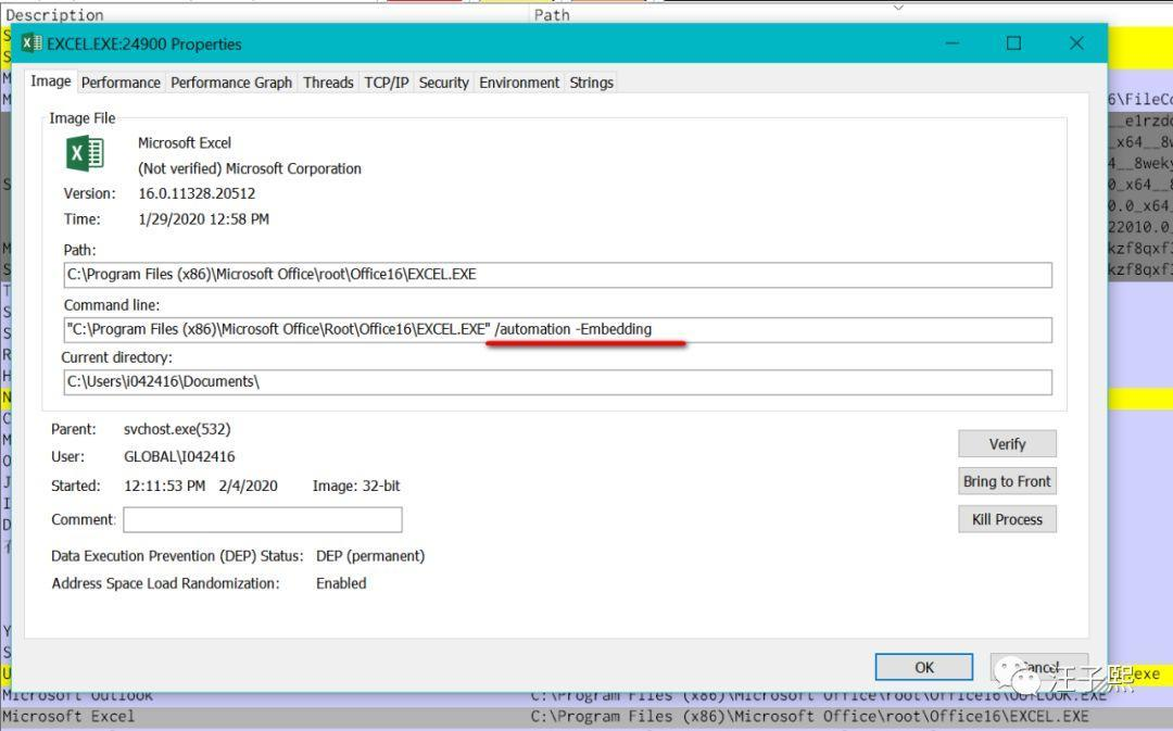 在任务管理器能看到该应用通过参数**/automation -Embedding**的方式启动: