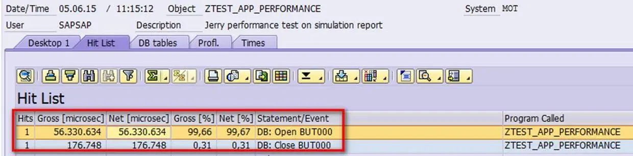 I wrote a report in jerry system MOR/300 to reproduce this performance issue, report name: ZTEST_APP_PERFORMANCE. Simply execute it and you will find the issue.