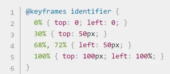 @keyframes 规则通过在动画序列中定义关键帧(或waypoints)的样式来控制CSS动画序列中的中间步骤。这比transition更能控制动画序列的中间步骤。相当于声明一个动画,之后在相应css选择器后面用animation:动画名; 来使用