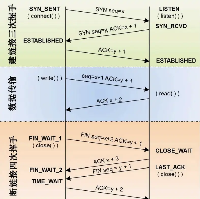 TCP协议中客户端与服务端流程图如下: