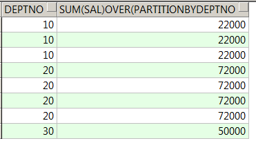 sum(sal) over(partition by deptno),