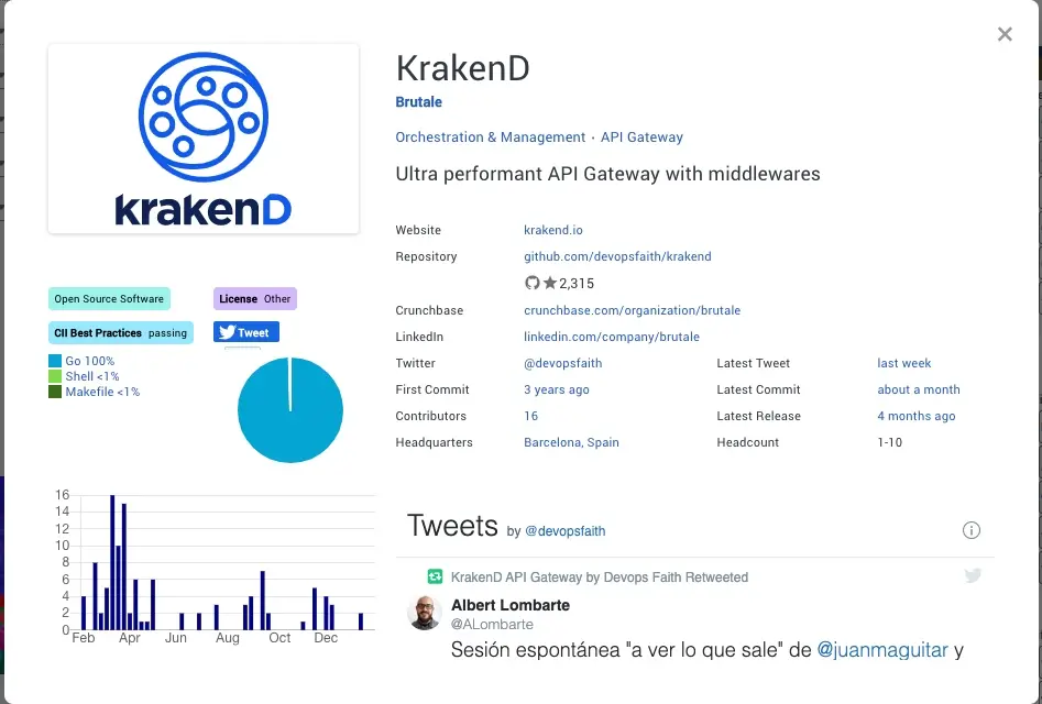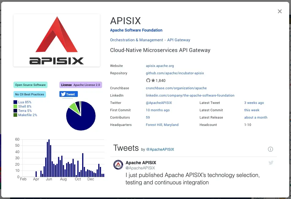 比如我关注“API Gateway API网关”,就点击他的图标就可以看到相关信息APISIX